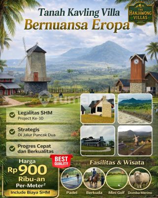 Dijual Tanah Murah Exclusive . Legalitas lengkap dan aman . Zona Kuning bisa dibangun permanen . View pemandangan Pegunungan dan Pesawahan . Harga sudah termasuk Biaya Balik Nama SHM . Suasana asri sejuk udara pegunungan . Akses mobil jalan cor . Cocok buat investasi