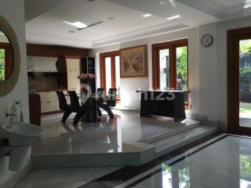 Tanah SHM, luas 640 m² Bangunan 420 m², 2 tingkat full marmer & granit. Pintu, jendela & kusen full jati grade istimewa, Full AC., Pemanas air Solahart. R.Tamu di paviliun terpisah + toilet, wastafel, 3 kmr. tidur masing² dilengkapi dgn kmr. mandi, bathquip di kmr. utama, R. Kerja, R. Keluarga atas & bawah Studio/R. Musik (kedap suara), R. Makan + pantry, Dapur kotor, R. Setrika, Area Service, Gudang, Kmr. Pembantu + kmr. mandi & WC, Gudang/rumah pompa. Garasi muat 2 mobil sejajar & carpot utk 4 mobil. Halaman depan, belakang & samping tengah + kolam ikan Listrik PLN 23.000 Watt, Air PAM & jet pump, Gas PGN, Telp, Jaringan TV Kabel Rp 22m