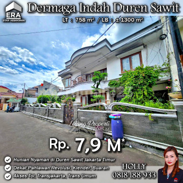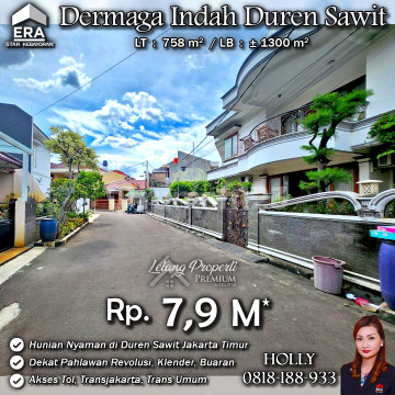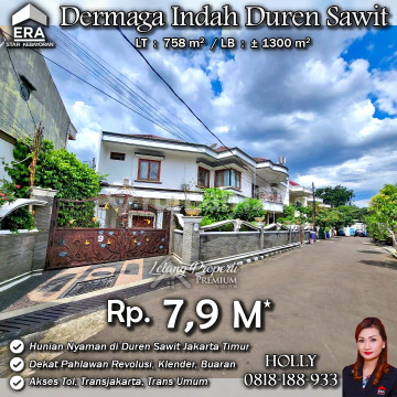 INFO UPDATE LISTING - LP RUMAH MEWAH ASRI NYAMAN CLUSTER PREMIUM DERMAGA INDAH KLENDER JAKARTA TIMUR Alamat: Perum Dermaga Indah Jl. Dermaga Indah Kel. Klender Kec. Duren Sawit JakTim Detail Properti: - Luas Tanah : 758 m² - Luas Bangunan : ± 1300 m² Keunggulan Lokasi: - Lokasi Premium dan Strategis Harga: Rp. 7,9 M (CASH ONLY) Harga SUDAH Termasuk biaya Pengosongan dan Balik Nama. (Harga di atas belum termasuk BPHTB 5%, biaya lelang 2%, Pajak Pemerintah 1%, dan PBB jika ada) **Kenapa Memilih Kami?** Dengan pengalaman 12 tahun di bidang lelang, kami menyediakan solusi satu atap untuk semua transaksi properti Anda. Proses yang jelas dan bersih sehingga Anda bisa tenang hingga serah terima. Hubungi Kami untuk Info Lebih Lanjut: - Holly: 081818xxxx - Ferry: 0816116xxxxLelangProperti #PropertiIndonesia #InvestasiProperti #PropertyInvestment #RumahDijual #AgentProperti #JakartaRealEstate #JualBeliProperti #EraIndonesia #AgenPropertiTerpercaya #Investasi #RealEstateAuction #RumahdijualJakartaTimur #RumahMewah #RumahdijualKlender #Rumahasri #Rumahminimalis #Buaran #PahlawanRevolusi #DermagaIndah #DurenSawit #Klender #JakartaTimur