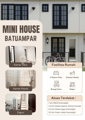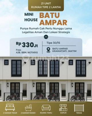 Hunian Nyaman & Strategis di Batu Ampar - Kramatjati, Jakarta Timur Inilah pilihan cerdas untuk Anda yang mencari hunian praktis, modern, dan efisien di tengah kota. Bukan sekadar hunian, bisa juga sebagai investasi karena lokasinya strategis dan banyak dicari oleh orang yang memerlukan rumah kontrakan di Jakarta. Rumah Konsep Aparthouse 2 Lantai - dirancang untuk gaya hidup urban yang dinamis. Compact, setiap ruang tertata fungsional dan tetap nyaman untuk keluarga kecil maupun pasangan muda. Spesifikasi: Tipe: 2 lantai Luas Tanah: 15 m² Luas Bangunan: 30 m² Kamar Tidur: 2 Kamar Mandi: 2 Ruang Tamu & Dapur Teras Motor Legalitas: SHM (Sertifikat Hak Milik) Ukuran: Panjang 5 m × Lebar 3 m Harga: Rp 330 Juta (Free Balik Nama & SHM). Cash Only. Akses motor (tanpa carport) Lokasi Strategis Dekat: RSUD Kramatjati Jl. Raya Condet Pasar Induk Kramatjati RSUD Pasar Rebo Global Islamic School Condet Keunggulan: Lokasi strategis di kawasan berkembang, Konsep apart-house minimalis, efisien & modern, Cocok untuk investasi atau tempat tinggal pribadi, Legalitas aman - SHM langsung atas nama pembeli. Hunian ideal bagi Anda yang ingin punya rumah di Jakarta Timur dengan harga bersahabat, desain fungsional, dan akses mudah ke berbagai fasilitas kota Buktikan langsung dengan survey ke lokasinya Pilihan unit terbatas, segera ambil kesempatan ini sebelum kehabisan lagi