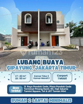*Rumah Minimalis Modern di Jakarta Timur* Lokasi Strategis Ibukota: Cocok Sebagai Hunian Dan Investasi. Dekat Mall, LRT, Bandara Halim & TMII Hunian 2 lantai eksklusif di Lubang Buaya - Cipayung, Jakarta Timur dengan harga terjangkau Unit terbatas, cuma 20 rumah eksklusif! Luas tanah : 42,8 m² Luas bangunan : 50 m² Kamar tidur : 2 Kamar mandi : 2 Carport : 1 mobil Sumber air : sumur bor Listrik : 2200 w Rumah hadap : barat tersedia variasi luas bangunan dan tanah lebih besar dengan harga berbeda tentunya