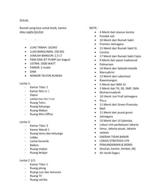 Rumah Sangat Strattegis 2,5 lantai Bisa Untuk Butik,Kantor Atau Usaha Kost2-an di Matraman Jakarta Timur Luas tanah : 161m2 Luas Bangun : 250m2 Kamar Tidur : 5 kamar mandi ; 2 Lantai : 2,5 Lantai Air : Air Bagus PAM dan Jet-Pump Orientasi : Utara Thn Bangun : 1994 Listrik : 3500watt Carport : 2mobil Legalitas : SHM Harga : 3,7 M - Nego Owner