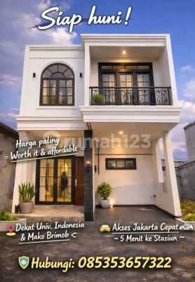 Rumah Modern Classic di kawasan Kelapa Dua, Depok dengan lokasi strategis dan akses yang sangat mudah ke berbagai fasilitas penting. Hunian ini cocok untuk Anda yang membutuhkan mobilitas tinggi namun tetap menginginkan lingkungan yang nyaman. Akses & Lokasi Strategis: ±10 menit ke Stasiun Universitas Indonesia (KRL Commuter Line) ±10 menit ke Universitas Indonesia ±10 menit ke Cijago Toll Road Dekat Mako Brimob Kelapa Dua Dekat kawasan kuliner dan pusat aktivitas Margonda Raya Lingkungan nyaman, akses jalan lebar, serta berada di kawasan yang terus berkembang sehingga cocok sebagai hunian maupun investasi properti jangka panjang. Cocok untuk: - Pekerja Jakarta Selatan & Jakarta Timur - Keluarga muda yang mencari hunian strategis - Investasi properti dengan lokasi berkembang Unit terbatas - hubungi sekarang untuk detail harga dan jadwal survey lokasi.