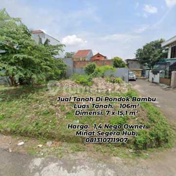 Tanah Datar Kavling Hook di Pondok Bambu Jakarta Timur Lokasi sangat Strategis Luas Tanah : 106 Dimensi. : 7 × 15,1 m² Harga. : 1,4 M (Nego) SHM Hadap : selatan Selling Point Dekat Jalan Raya Kalimalang Dekat Gerbang Toll Becakayu dan Tol JORR serta MBZ Dekat ke pusat perbelanjaan Dekat Ke Pusat Pendidikan Dekat ke jalan Raya pondok Kelapa Dekat jalan Raya Duren Sawit Dekat pusat Perbelanjaan Dekat ke Pasar Tradisional Minat hub Mepo Majestik Bakery Jalan Pahlawan Revolusi, pondok bambu jakarta timur Hubungi Siska 0878xxxxxxxx