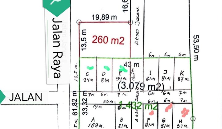 Total Luas Lahan : 1666 m2 Miliki Tanah Kavling di Dalam Komplek Perumahan Elit Billymoon di Pondok Kelapa Jakarta Timur SPESIFIKASI : - Legalitas : SHM (Sertifikat Hak Milik), PBB Lengkap (Aman & Clear). - Total Unit : 15 Kavling - Luas Per Kavling : 81 m2 - 682 m2 - Lebar 5 meter sd 10 meter - Total Luas Lahan : 1666 meter - Harga : 7 juta / meter KEUNGGULAN : - 5 Menit ke Pintu Tol Becakayu (Akses cepat ke Bekasi/Pusat Jakarta). - 10 Menit ke Stasiun KRL Buaran. - 5 Menit ke Jalan Raya Radin Inten. - Dekat tempat ibadah (Masjid). - 10 Menit ke RS Harum Sisma Medika. - 5 Menit ke Depo Bangunan (Mudah cari bahan bangunan). - 10 Menit ke Sekolah Embun Pagi. - 10 Menit ke McDonalds Buaran & Area Kuliner. Segera survey lokasi sebelum kehabisan. Unit terbatas! 7017T312