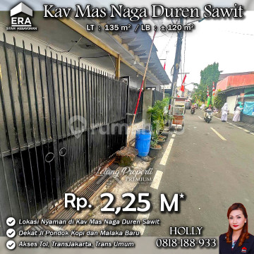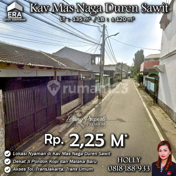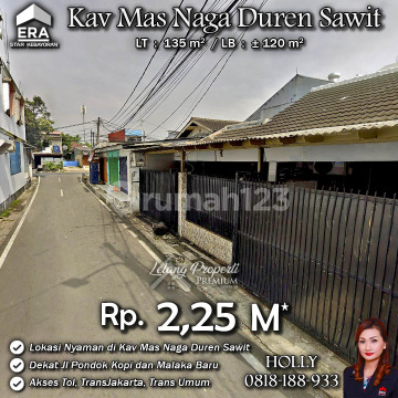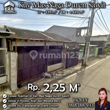 INFO LISTING - L06 RUMAH TUA LAYAK HUNI STRATEGIS KAV MAS NAGA DUREN SAWIT JAKARTA TIMUR Alamat: Kav Mas Naga Kel. Pondok Kopi Kec. Duren Sawit JakTim Detail Properti: - Luas Tanah : 135 m² - Luas Bangunan : ± 120 m² Keunggulan Lokasi: - Lokasi Strategis dan Nyaman Harga: Rp. 2,25 M (CASH ONLY) Harga SUDAH Termasuk biaya Balik Nama dan fee. (Harga di atas belum termasuk Pengosongan, BPHTB 5%, biaya lelang 2%, Pajak Pemerintah 1%, dan PBB jika ada) **Kenapa Memilih Kami?** Dengan pengalaman 12 tahun di bidang lelang, kami menyediakan solusi satu atap untuk semua transaksi properti Anda. Proses yang jelas dan bersih sehingga Anda bisa tenang hingga serah terima. Hubungi Kami untuk Info Lebih Lanjut: - Holly: 081818xxxx - Ferry: 0816116xxxxLelangProperti #PropertiIndonesia #InvestasiProperti #PropertyInvestment #RumahDijual #AgentProperti #JakartaRealEstate #JualBeliProperti #EraIndonesia #AgenPropertiTerpercaya #Investasi #RealEstateAuction #RumahMewah #RumahdijualDurenSawit #Rumahasri #Rumahminimalis #MasNaga #DurenSawit #PondokKopi #JakartaTimur #Malakabaru