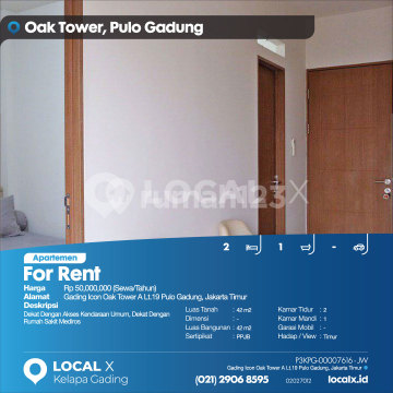 Dekat Dengan Akses Kendaraan Umum, Dekat Dengan Rumah Sakit Mediros For Rent - Sewa Apartemen Gading Icon Oak Tower A Lt.19 Pulo Gadung, Jakarta Timur Harga. Rp 5000xxxxSewa/Tahun) Deskripsi Properti. Dekat Dengan Akses Kendaraan Umum, Dekat Dengan Rumah Sakit Mediros Luas Tanah. 42 m2 Dimensi. - Luas Bangunan. 42 m2 Sertipikat. PPJB Kamar Tidur. 2 Kamar Mandi. 1 Garasi Mobil. - Hadap / View. Timur LOCAL X Kelapa Gading ******** ⓪②① ②⑨⓪⑥ ⑧⑤⑨⑤ P3KPG-0000xxxx-JW-S