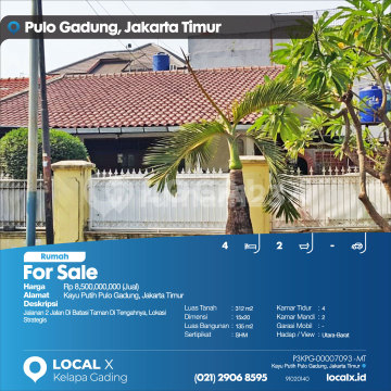 Jalanan 2 Jalan Di Batasi Taman Di Tengahnya, Lokasi Strategis For Sale - Jual Rumah Kayu Putih Pulo Gadung, Jakarta Timur Harga. Rp 850000xxxxJual) Deskripsi Properti. Jalanan 2 Jalan Di Batasi Taman Di Tengahnya, Lokasi Strategis Luas Tanah. 312 m2 Dimensi. 15x20 Luas Bangunan. 135 m2 Sertipikat. SHM Kamar Tidur. 4 Kamar Mandi. 2 Garasi Mobil. - Hadap / View. Utara-Barat LOCAL X Kelapa Gading ******** ⓪②① ②⑨⓪⑥ ⑧⑤⑨⑤ Whatsapp/Call. Mariana - ⓪⑧①⑥④⑧③⓪⑤⑤⓪ P3KPG-0000xxxx-MT-J