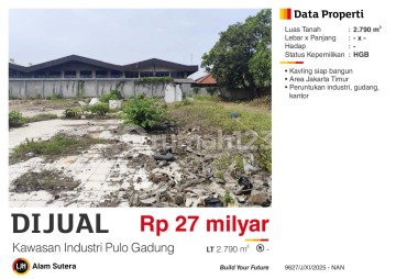 Tanah di Pulo Gadung. Cek segera tanah 1 lantai yang asri ini, dijual menghadirkan lingkungan fasilitas yang lengkap, cocok untuk Anda yang menginginkan hunian aman. Spesifikasi Utama Properti: - Sertifikat: HGB - Hak Guna Bangunan Fitur unggulan: - Bisa KPR. - Bebas Banjir. - Cicilan Bertahap. - Dekat Kawasan Bisnis & Industri. - Cocok Untuk Investasi. - Cocok Untuk Dijual Kembali. - Properti Bisa Nego. - Akses Jalan Muat 2 Mobil. - Lokasi Strategis. - Lokasi Bebas Banjir. - Bisa KPR. - Hitungan Tanah Kavling. - Hitungan Tanah Kosong. Terletak di Pulo Gadung, tanah ini memberikan kemudahan akses ke berbagai fasilitas menarik. Dengan harga Rp. 27.000.000.xxx, anda bisa memiliki hunian terbaik yang sudah siap huni dan bersertifikat HGB - Hak Guna Bangunan. Segera ambil kesempatan untuk menikmati pengalaman tinggal di kawasan Pulo Gadung yang nyaman ini! Kontak segera untuk informasi lebih lanjut!
