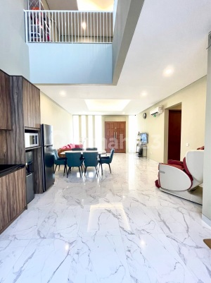 - Bangunan baru tahun 2023 (seperti baru) - Hadap selatan - Luas tanah 145 m2 (SHM) / 8x18 - Luas bangunan - + 450 m2 - Jumlah lantai 4 - Furniture: semi furnish (free kitchen set) - Kamar Tidur : 3 + 1 (bisa tambah 2 kamar lagi di Lt.4nya) - Kamar mandi: 4 - Livingroom It.4 (rooftop) : 1 (ruang serbaguna/ + kamar ke 5) - Kamar PRT : 1 - Gudang : 2 - Garasi: 4 mobil (It.1 semi basement) - Rooftop: ada, It.4 / city view / bisa untuk gym area,barbeque area. (Bisa dibangun Pool.) - Lift : tidak ada (bisa ditambahkan lift jika perlu, dan tidak menggangu design) - Listrik: 5,500 KWH - Lampu: Full LED - AIR: PAM / PDAM - Dapur: ada, (1 dapur bersih dan 1 dapur kotor) - Spec lantai: Granite ROMAN ITALY - Spec KM utama: full PALOMA ITALY, Bathub & Double Washtafel Terraso Bali, smart closet - Kamar utama: menggunakan Smart Doorlock - line Watter heater : ada - Line CCTV : ada - Instalasi mobil electric : ada