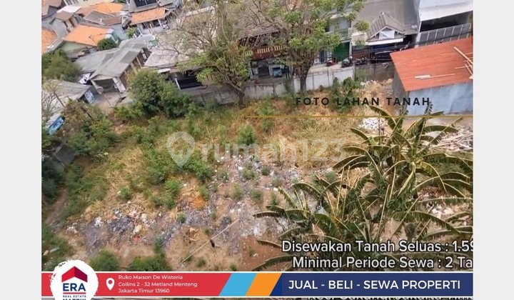 SEWA TANAH UJUNG MENTENG, Jln. Tanjakan Auri Ujung Menteng Kec. Cakung, Jakarta Timur Luas Tanah: 1.596 M² Harga : Rp 25.000/M²/Bulan Minimal Periode Sewa 2 Tahun *DI