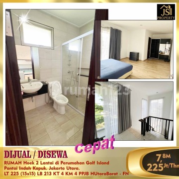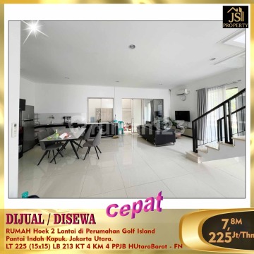 DIJUAL / DISEWAKAN RUMAH Hoek 2 Lantai di Perumahan Golf Island Pantai Indah Kapuk. Jakarta Utara. Rumah siap Huni, samping rumah ada Taman yg luas, Bebas Banjir , keamanan 24 jam , dekat akses Tol , Banyak Area Kuliner ,dekat Mall PIK Avenue. Luas Tanah 225 m² ( Hoek ) Ukuran Dimensi 15 x 15 m² Luas Bangunan 213 m² 2 Lantai Kamar Tidur 3 + 1 Kamar Mandi 3 + 1 Listrik 4400 Watt Air WTP Sertifikat : PPJB , Siap AJB ( sdh ada undangan untuk AJB dr developer ) Full Furnished Hadap Utara Dan Barat Harga Jual : 7,8 M Nego Hub : Fenny - JS Property 0821xxxxxxxx