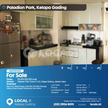 Siap Huni, Dekat Dengan Lotte Mart, RS Mitra Keluarga Gading, Dekat Dengan Perkantoran Dan Kuliner For Sale - Jual Apartemen Paladian Park Tower A Lt.8, Kelapa Gading, Jakarta Utara Harga. Rp 85000xxxxJual) Deskripsi Properti. Siap Huni, Dekat Dengan Lotte Mart, RS Mitra Keluarga Gading, Dekat Dengan Perkantoran Dan Kuliner Luas Tanah. 69 m2 Dimensi. - Luas Bangunan. 69 m2 Sertipikat. SHM Kamar Tidur. 2 Kamar Mandi. 1 Garasi Mobil. - Hadap / View. Mall Kelapa Gading LOCAL X Kelapa Gading ******** ⓪②① ②⑨⓪⑥ ⑧⑤⑨⑤ P3KPG-0000xxxx-JW-J