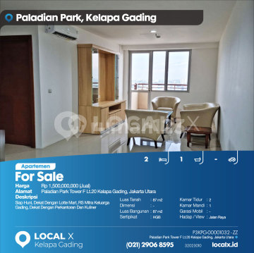 Siap Huni, Dekat Dengan Lotte Mart, RS Mitra Keluarga Gading, Dekat Dengan Perkantoran Dan Kuliner For Sale - Jual Apartemen Paladian Park Tower F Lt.20 Kelapa Gading, Jakarta Utara Harga. Rp 150000xxxxJual) Deskripsi Properti. Siap Huni, Dekat Dengan Lotte Mart, RS Mitra Keluarga Gading, Dekat Dengan Perkantoran Dan Kuliner Luas Tanah. 87 m2 Dimensi. - Luas Bangunan. 87 m2 Sertipikat. HGB Kamar Tidur. 2 Kamar Mandi. 1 Garasi Mobil. - Hadap / View. Jalan Raya LOCAL X Kelapa Gading ******** ⓪②① ②⑨⓪⑥ ⑧⑤⑨⑤ P3KPG-0000xxxx-ZZ-J