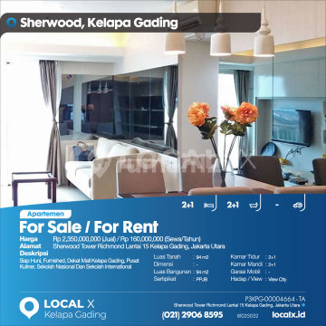 Siap Huni, Furnished, Dekat Mall Kelapa Gading, Pusat Kuliner, Sekolah Nasional Dan Sekolah International For Sale / For Rent - Jual / Sewa Apartemen Sherwood Tower Richmond Lantai 15 Kelapa Gading, Jakarta Utara Harga. Rp 2,350,000,000 (Jual) / Rp 160,000,000 (Sewa/Tahun) Deskripsi Properti. Siap Huni, Furnished, Dekat Mall Kelapa Gading, Pusat Kuliner, Sekolah Nasional Dan Sekolah International Luas Tanah. 94 m2 Dimensi. - Luas Bangunan. 94 m2 Sertipikat. PPJB Kamar Tidur. 2+1 Kamar Mandi. 2+1 Garasi Mobil. - Hadap / View. View City LOCAL X Kelapa Gading ******** ⓪②① ②⑨⓪⑥ ⑧⑤⑨⑤ P3KPG-0000xxxx-TA-J/S