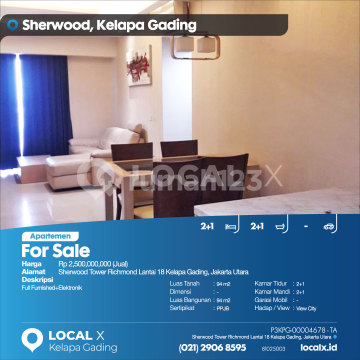 Full Furnished+Elektronik For Sale - Jual Apartemen Sherwood Tower Richmond Lantai 18 Kelapa Gading, Jakarta Utara Harga. Rp 2,500,000,000 (Jual) Deskripsi Properti. Full Furnished+Elektronik Luas Tanah. 94 m2 Dimensi. - Luas Bangunan. 94 m2 Sertipikat. PPJB Kamar Tidur. 2+1 Kamar Mandi. 2+1 Garasi Mobil. - Hadap / View. View City LOCAL X Kelapa Gading ******** ⓪②① ②⑨⓪⑥ ⑧⑤⑨⑤ P3KPG-0000xxxx-TA-J