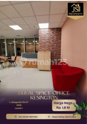 DIJUAL SPACE OFFICE Lantai 1 di Kesington Kelapa Gading - Jakarta Utara Luas Bangunan 74 m² Lantai 1 Kamar Mandi 1 UnFurnish Listrik 6.600!Watt Air Pam Sertifikat PPJB Hadap Barat Hal yang Menarik : - Bebas Banjir - Area Strategis Pusat Bisnis, Kuliner dan Investasi Harga 1,8 M Nego open to cobroke