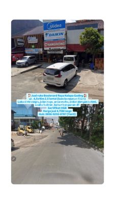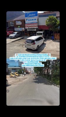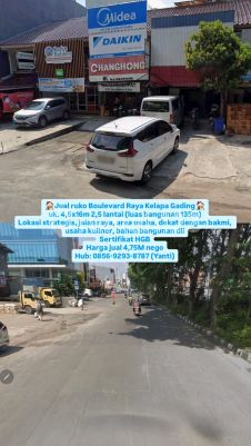 Jual ruko Boulevard Raya Kelapa Gading uk. 4,5x16m 2,5 lantai (luas bangunan 135m) Lokasi strategis, jalan raya, area usaha, dekat dengan bakmi, usaha kuliner, bahan bangunan dll Sertifikat HGB Harga jual 4,75M nego Hub: 08569293xxxxYanti)