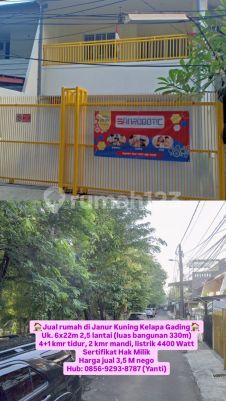Jual rumah di Janur Kuning Kelapa Gading Uk. 6x22m 2,5 lantai (luas bangunan 330m) 4+1 kmr tidur, 2 kmr mandi, listrik 4400 Watt Sertifikat Hak Milik Harga jual 3,5 M nego Hub: 08569293xxxxYanti)