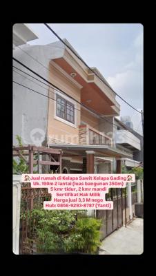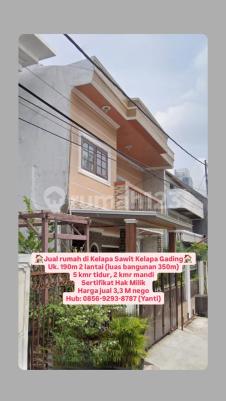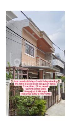 Jual rumah di Kelapa Sawit Kelapa Gading Uk. 190m 2 lantai (luas bangunan 350m) 5 kmr tidur, 2 kmr mandi Sertifikat Hak Milik Harga jual 3,3 M nego Hub: 08569293xxxxYanti)