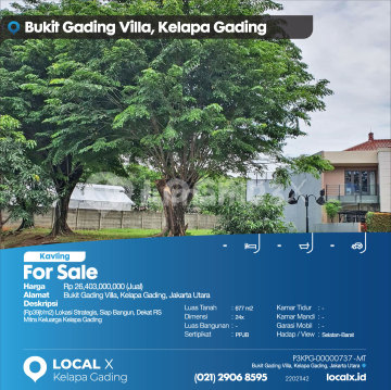 (Rp39jt/m2) Lokasi Strategis, Siap Bangun, Dekat RS Mitra Keluarga Kelapa Gading For Sale - Jual Tanah Kavling Bukit Gading Villa, Kelapa Gading, Jakarta Utara Harga. Rp 26,403,000,000 (Jual) Deskripsi Properti. (Rp39jt/m2) Lokasi Strategis, Siap Bangun, Dekat RS Mitra Keluarga Kelapa Gading Luas Tanah. 677 m2 Dimensi. 24x Luas Bangunan. 677 m2 Sertipikat. PPJB Kamar Tidur. - Kamar Mandi. - Garasi Mobil. - Hadap / View. Selatan-Barat LOCAL X Kelapa Gading ******** ⓪②① ②⑨⓪⑥ ⑧⑤⑨⑤ Whatsapp/Call. Mariana - ⓪⑧①⑥④⑧③⓪⑤⑤⓪ P3KPG-0000xxxx-MT-J