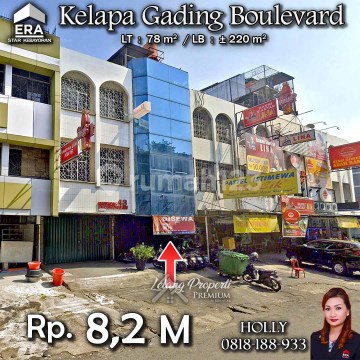 INFO LISTING - L03 RUKO 3,5 LT LOKASI STRATEGIS PREMIUM KELAPA GADING BOULEVARD JAKUT Alamat: Jl. Kelapa Gading Boulevard Kel. Kelapa Gading Timur Jakut Detail : - LT : 78 m² - LB : ± 220 m² Keunggulan Lokasi: - Lokasi Strategis Harga: Rp. 8,2 M (CASH ONLY) Harga BELUM Termasuk biaya Pengosongan dan Balik Nama. (Harga di atas belum termasuk BPHTB 5%, biaya lelang 2%, Pajak Pemerintah 1%, dan PBB jika ada) **Kenapa Memilih Kami?** Dengan pengalaman 12 tahun di bidang lelang, kami menyediakan solusi satu atap untuk semua transaksi properti Anda. Proses yang jelas dan bersih sehingga Anda bisa tenang hingga serah terima. Hubungi : - Holly: 081818xxxx - Ferry: 0816116xxxxRukodijualKelapaGading #Rukodijual #Kelapagadingmal #KelapaGading #MallofIndonesia