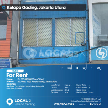Siap Pakai, Cocok Untuk Usaha, Lokasi Strategis Di Jalan Raya Boulevard For Rent - Sewa Ruko Boulevard Raya, Kelapa Gading, Jakarta Utara Harga. Rp 22500xxxxSewa/Tahun) Deskripsi Properti. Siap Pakai, Cocok Untuk Usaha, Lokasi Strategis Di Jalan Raya Boulevard Luas Tanah. 76.5 m2 Dimensi. 4.5x17 Luas Bangunan. 92 m2 Sertipikat. HGB Kamar Tidur. - Kamar Mandi. 2 Garasi Mobil. - Hadap / View. Timur LOCAL X Kelapa Gading ******** ⓪②① ②⑨⓪⑥ ⑧⑤⑨⑤ Whatsapp/Call. Mariana - ⓪⑧①⑥④⑧③⓪⑤⑤⓪ P3KPG-0000xxxx-MT-S