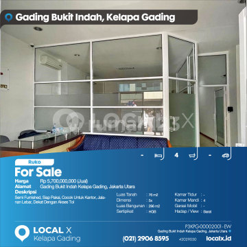 Semi Furnished, Siap Pakai, Cocok Untuk Kantor, Jalanan Lebar, Dekat Dengan Akses Tol For Sale - Jual Ruko Gading Bukit Indah Kelapa Gading, Jakarta Utara Harga. Rp 570000xxxxJual) Deskripsi Properti. Semi Furnished, Siap Pakai, Cocok Untuk Kantor, Jalanan Lebar, Dekat Dengan Akses Tol Luas Tanah. 76 m2 Dimensi. 5x Luas Bangunan. 296 m2 Sertipikat. HGB Kamar Tidur. - Kamar Mandi. 4 Garasi Mobil. - Hadap / View. Barat LOCAL X Kelapa Gading ******** ⓪②① ②⑨⓪⑥ ⑧⑤⑨⑤ Whatsapp/Call. Mariana - ⓪⑧①⑥④⑧③⓪⑤⑤⓪ P3KPG-0000xxxx-EW-J