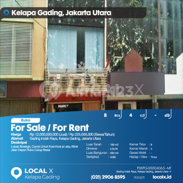 Lokasi Strategis, Cocok Untuk Kost-Kost an atau Klinik Jalan Depan Ruko Cukup Besar For Sale / For Rent - Jual / Sewa Ruko Gading Indah Raya, Kelapa Gading, Jakarta Utara Harga. Rp 1200000xxxxJual) / Rp 22500xxxxSewa/Tahun) Deskripsi Properti. Lokasi Strategis, Cocok Untuk Kost-Kost an atau Klinik Jalan Depan Ruko Cukup Besar Luas Tanah. 156 m2 Dimensi. 4.5x16 Luas Bangunan. 200 m2 Sertipikat. HGB Kamar Tidur. 8 Kamar Mandi. 4 Garasi Mobil. - Hadap / View. Timur LOCAL X Kelapa Gading ******** ⓪②① ②⑨⓪⑥ ⑧⑤⑨⑤ Whatsapp/Call. Mariana - ⓪⑧①⑥④⑧③⓪⑤⑤⓪ P3KPG-0000xxxx-MT-J/S