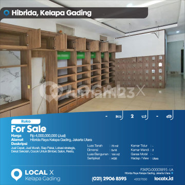 Jual Cepat, Jual Murah, Siap Pakai, Lokasi strategis, Dekat Sekolah, Cocok Untuk Bimbel, Salon, Resto, For Sale - Jual Ruko Hibrida Raya Kelapa Gading, Jakarta Utara Harga. Rp 400000xxxxJual) Deskripsi Properti. Jual Cepat, Jual Murah, Siap Pakai, Lokasi strategis, Dekat Sekolah, Cocok Untuk Bimbel, Salon, Resto, Luas Tanah. 72 m2 Dimensi. 5x16 Luas Bangunan. 144 m2 Sertipikat. HGB Kamar Tidur. - Kamar Mandi. 2 Garasi Mobil. - Hadap / View. Utara LOCAL X Kelapa Gading ******** ⓪②① ②⑨⓪⑥ ⑧⑤⑨⑤ Whatsapp/Call. Mariana - ⓪⑧①⑥④⑧③⓪⑤⑤⓪ P3KPG-0000xxxx-LA-J