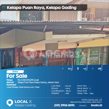 Lokasi Strategis, Dekat Gedung Judo, Polsek For Sale - Jual Ruko Kelapa Puan Raya Kelapa Gading, Jakarta Utara Harga. Rp 450000xxxxJual) Deskripsi Properti. Lokasi Strategis, Dekat Gedung Judo, Polsek Luas Tanah. 67.5 m2 Dimensi. 4.5x15 Luas Bangunan. 108 m2 Sertipikat. HGB Kamar Tidur. - Kamar Mandi. 2 Garasi Mobil. - Hadap / View. Utara LOCAL X Kelapa Gading ******** ⓪②① ②⑨⓪⑥ ⑧⑤⑨⑤ Whatsapp/Call. Mariana - ⓪⑧①⑥④⑧③⓪⑤⑤⓪ P3KPG-0000xxxx-MT-J