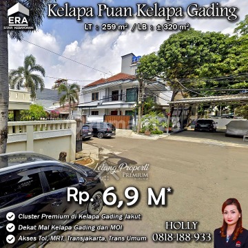 INFO UPDATE LISTING - L05 RUMAH ASRI NYAMAN TERAWAT LOKASI STRATEGIS KELAPA PUAN KELAPA GADING JAKUT Alamat: Jl. Kelapa Puan Kel. Pegangsaan Kec. Kelapa Gading Jakarta Utara Detail Properti: - Luas Tanah : 259 m² - Luas Bangunan : ± 320 m² Keunggulan Lokasi: - Lokasi Strategis, Asri dan Nyaman Harga: Rp. 6,9 M (CASH ONLY) Harga SUDAH Termasuk biaya Pengosongan dan Balik Nama. (Harga di atas belum termasuk BPHTB 5%, biaya lelang 2%, Pajak Pemerintah 1%, dan PBB jika ada) **Kenapa Memilih Kami?** Dengan pengalaman 12 tahun di bidang lelang, kami menyediakan solusi satu atap untuk semua transaksi properti Anda. Proses yang jelas dan bersih sehingga Anda bisa tenang hingga serah terima. Hubungi Kami untuk Info Lebih Lanjut: - Holly: 081818xxxx - Ferry: 0816116xxxxLelangProperti #PropertiIndonesia #InvestasiProperti #PropertyInvestment #RumahDijual #AgentProperti #JakartaRealEstate #JualBeliProperti #EraIndonesia #AgenPropertiTerpercaya #Investasi #RealEstateAuction #JakartaUtara #RumahMewah #RumahdijualJakartaUtara #Rumahasri #Rumahminimalis #MOI #KelapaGadingMal #MalKelapagading #KelapaPuan #KelapaGading