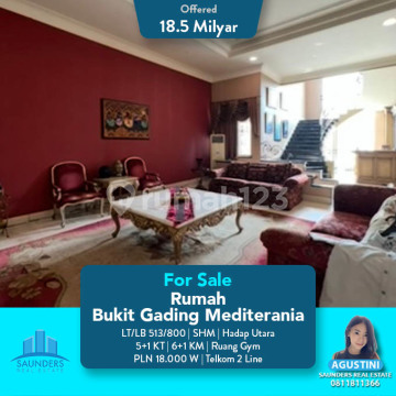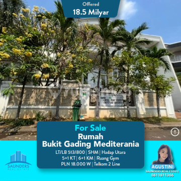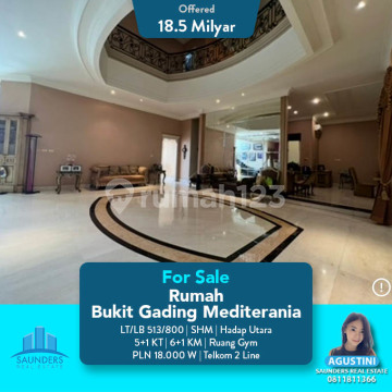 For sale rumah Bukit gading mediterania LT 513 m2 LB 800m2 5+1 ruang gym +3 6+1 16.000 watt Tlp 2 line SHM Utara 18.5 M nego