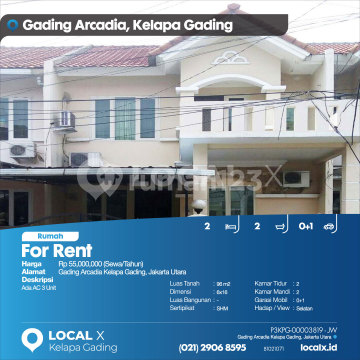Ada AC 3 Unit For Rent - Sewa Rumah Gading Arcadia Kelapa Gading, Jakarta Utara Harga. Rp 5500xxxxSewa/Tahun) Deskripsi Properti. Ada AC 3 Unit Luas Tanah. 96 m2 Dimensi. 6x16 Luas Bangunan. 96 m2 Sertipikat. SHM Kamar Tidur. 2 Kamar Mandi. 2 Garasi Mobil. 0+1 Hadap / View. Selatan LOCAL X Kelapa Gading ******** ⓪②① ②⑨⓪⑥ ⑧⑤⑨⑤ P3KPG-0000xxxx-JW-S