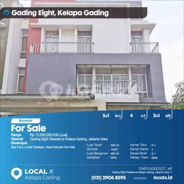 Siap Huni, Lokasi Strategis, Dekat Sekolah Dan Mall For Sale - Jual Rumah Gading Eight Residence Kelapa Gading, Jakarta Utara Harga. Rp 1290000xxxxJual) Deskripsi Properti. Siap Huni, Lokasi Strategis, Dekat Sekolah Dan Mall Luas Tanah. 336 m2 Dimensi. 14x23 Luas Bangunan. 460 m2 Sertipikat. SHM Kamar Tidur. 5+1 Kamar Mandi. 4 Garasi Mobil. 2+1 Hadap / View. Barat LOCAL X Kelapa Gading ******** ⓪②① ②⑨⓪⑥ ⑧⑤⑨⑤ Whatsapp/Call. Mariana - ⓪⑧①⑥④⑧③⓪⑤⑤⓪ P3KPG-0000xxxx-MT-J