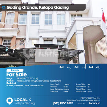 AC 6 Unit, Lokasi Hoek, Cluster, Keamanan 24 Jam For Sale - Jual Rumah Gading Grande Timur, Kelapa Gading, Jakarta Utara Harga. Rp 650000xxxxJual) Deskripsi Properti. AC 6 Unit, Lokasi Hoek, Cluster, Keamanan 24 Jam Luas Tanah. 144 m2 Dimensi. 8x18 Luas Bangunan. 244 m2 Sertipikat. SHM Kamar Tidur. 4+1 Kamar Mandi. 3+1 Garasi Mobil. 4+2 Hadap / View. Timur LOCAL X Kelapa Gading ******** ⓪②① ②⑨⓪⑥ ⑧⑤⑨⑤ P3KPG-0000xxxx-RN-J