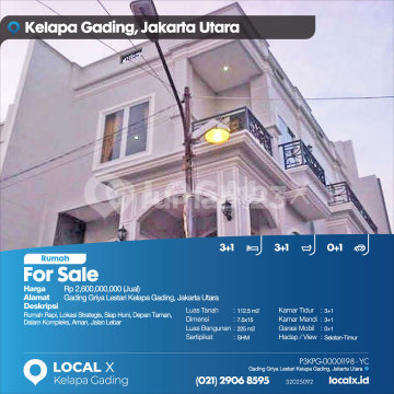 Rumah Rapi, Lokasi Strategis, Siap Huni, Depan Taman, Dalam Kompleks, Aman, Jalan Lebar For Sale - Jual Rumah Gading Griya Lestari Kelapa Gading, Jakarta Utara Harga. Rp 260000xxxxJual) Deskripsi Properti. Rumah Rapi, Lokasi Strategis, Siap Huni, Depan Taman, Dalam Kompleks, Aman, Jalan Lebar Luas Tanah. 112.5 m2 Dimensi. 7.5x15 Luas Bangunan. 225 m2 Sertipikat. SHM Kamar Tidur. 3+1 Kamar Mandi. 3+1 Garasi Mobil. 0+1 Hadap / View. Selatan-Timur LOCAL X Kelapa Gading ******** ⓪②① ②⑨⓪⑥ ⑧⑤⑨⑤ P3KPG-0000xxxx-YC-J