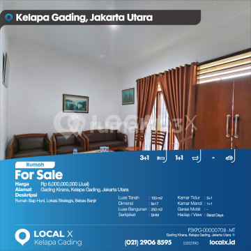 Rumah Siap Huni, Lokasi Strategis, Bebas Banjir For Sale - Jual Rumah Gading Kirana, Kelapa Gading, Jakarta Utara Harga. Rp 600000xxxxJual) Deskripsi Properti. Rumah Siap Huni, Lokasi Strategis, Bebas Banjir Luas Tanah. 153 m2 Dimensi. 9x17 Luas Bangunan. 250 m2 Sertipikat. SHM Kamar Tidur. 3+1 Kamar Mandi. 1+1 Garasi Mobil. - Hadap / View. Barat Daya LOCAL X Kelapa Gading ******** ⓪②① ②⑨⓪⑥ ⑧⑤⑨⑤ Whatsapp/Call. Mariana - ⓪⑧①⑥④⑧③⓪⑤⑤⓪ P3KPG-0000xxxx-MT-J