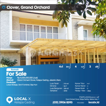 Lokasi Strategis, Semi Furnished, Siap Huni For Sale - Jual Rumah Grand Orchard Clover, Kelapa Gading, Jakarta Utara Harga. Rp 600000xxxxJual) Deskripsi Properti. Lokasi Strategis, Semi Furnished, Siap Huni Luas Tanah. 215 m2 Dimensi. 9x17 Luas Bangunan. 226 m2 Sertipikat. SHM Kamar Tidur. 4+1 Kamar Mandi. 4 Garasi Mobil. 2 Hadap / View. Utara LOCAL X Kelapa Gading ******** ⓪②① ②⑨⓪⑥ ⑧⑤⑨⑤ Whatsapp/Call. Mariana - ⓪⑧①⑥④⑧③⓪⑤⑤⓪ P3KPG-0000xxxx-MT-J