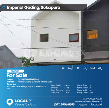 Brand New, Lokasi Strategis, Siap Huni, Keamanan 24 Jam For Sale - Jual Rumah Imperial Gading Sukapura, Jakarta Utara Harga. Rp 1,680,000,000 (Jual) Deskripsi Properti. Brand New, Lokasi Strategis, Siap Huni, Keamanan 24 Jam Luas Tanah. 60 m2 Dimensi. 4x15 Luas Bangunan. 95 m2 Sertipikat. HGB Kamar Tidur. 3 Kamar Mandi. 2 Garasi Mobil. 0+1 Hadap / View. Utara LOCAL X Kelapa Gading ******** ⓪②① ②⑨⓪⑥ ⑧⑤⑨⑤ P3KPG-0000xxxx-ZZ-J