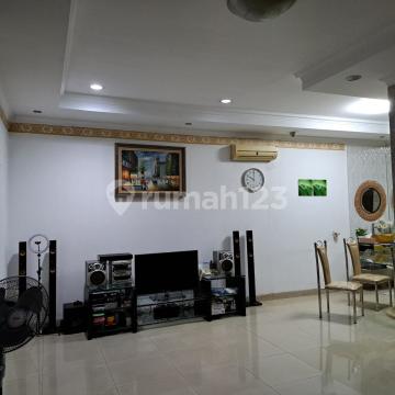 Di jual: Rumah Gading residence Pelangi kuning ukuran 8x16 m 2 ¾ lt. [Lt 3 dak + Gudang.] Semi Furnish & kitchen set. (Sdh renovasi + atap baja ringan) PLN 4400watt Hadap Selatan KT 3 + 1 KM 3 + 1 SHM