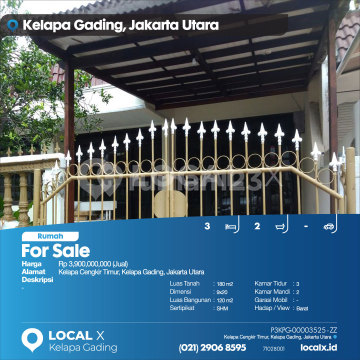 For Sale - Jual Rumah Kelapa Cengkir Timur, Kelapa Gading, Jakarta Utara Harga. Rp 390000xxxxJual) Deskripsi Properti. Luas Tanah. 180 m2 Dimensi. 9x20 Luas Bangunan. 120 m2 Sertipikat. SHM Kamar Tidur. 3 Kamar Mandi. 2 Garasi Mobil. - Hadap / View. Barat LOCAL X Kelapa Gading ******** ⓪②① ②⑨⓪⑥ ⑧⑤⑨⑤ P3KPG-0000xxxx-ZZ-J
