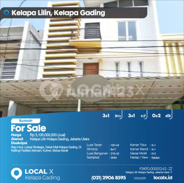 Siap Huni, Lokasi Strategis, Dekat Mall Kelapa Gading, Di Kelilingi Fasilitas Sekolah, Kuliner, Bebas Banjir For Sale - Jual Rumah Kelapa Lilin Kelapa Gading, Jakarta Utara Harga. Rp 310000xxxxJual) Deskripsi Properti. Siap Huni, Lokasi Strategis, Dekat Mall Kelapa Gading, Di Kelilingi Fasilitas Sekolah, Kuliner, Bebas Banjir Luas Tanah. 102 m2 Dimensi. 6x17 Luas Bangunan. 216 m2 Sertipikat. SHM Kamar Tidur. 3+1 Kamar Mandi. 3+1 Garasi Mobil. 0+2 Hadap / View. Selatan LOCAL X Kelapa Gading ******** ⓪②① ②⑨⓪⑥ ⑧⑤⑨⑤ P3KPG-0000xxxx-ZZ-J