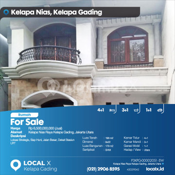 Lokasi Strategis, Siap Huni, Jalan Besar, Dekat Stasiun LRT For Sale - Jual Rumah Kelapa Nias Raya Kelapa Gading, Jakarta Utara Harga. Rp 650000xxxxJual) Deskripsi Properti. Lokasi Strategis, Siap Huni, Jalan Besar, Dekat Stasiun LRT Luas Tanah. 198 m2 Dimensi. 9x22 Luas Bangunan. 179 m2 Sertipikat. SHM Kamar Tidur. 4+1 Kamar Mandi. 3+1 Garasi Mobil. 1+1 Hadap / View. Utara LOCAL X Kelapa Gading ******** ⓪②① ②⑨⓪⑥ ⑧⑤⑨⑤ P3KPG-0000xxxx-EW-J
