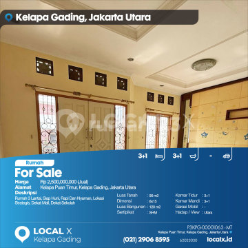 Rumah 3 Lantai, Siap Huni, Rapi Dan Nyaman, Lokasi Strategis, Dekat Mall, Dekat Sekolah For Sale - Jual Rumah Kelapa Puan Timur, Kelapa Gading, Jakarta Utara Harga. Rp 250000xxxxJual) Deskripsi Properti. Rumah 3 Lantai, Siap Huni, Rapi Dan Nyaman, Lokasi Strategis, Dekat Mall, Dekat Sekolah Luas Tanah. 90 m2 Dimensi. 6x15 Luas Bangunan. 120 m2 Sertipikat. SHM Kamar Tidur. 3+1 Kamar Mandi. 3+1 Garasi Mobil. - Hadap / View. Utara LOCAL X Kelapa Gading ******** ⓪②① ②⑨⓪⑥ ⑧⑤⑨⑤ Whatsapp/Call. Mariana - ⓪⑧①⑥④⑧③⓪⑤⑤⓪ P3KPG-0000xxxx-MT-J