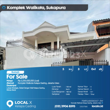 Lokasi Strategis, Dekat Dengan Mall Kelapa Gading, Bebas Banjir For Sale - Jual Rumah Komplek Walikota Kelapa Gading, Jakarta Utara Harga. Rp 225000xxxxJual) Deskripsi Properti. Lokasi Strategis, Dekat Dengan Mall Kelapa Gading, Bebas Banjir Luas Tanah. 120 m2 Dimensi. 8x15 Luas Bangunan. 160 m2 Sertipikat. SHM Kamar Tidur. 5 Kamar Mandi. 3 Garasi Mobil. 0+1 Hadap / View. Timur LOCAL X Kelapa Gading ******** ⓪②① ②⑨⓪⑥ ⑧⑤⑨⑤ P3KPG-0000xxxx-EW-J