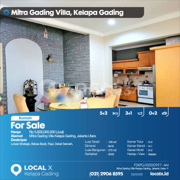 Lokasi Strategis, Bebas Banjir, Rapi, Dekat Sekolah, For Sale - Jual Rumah Mitra Gading Villa Kelapa Gading, Jakarta Utara Harga. Rp 560000xxxxJual) Deskripsi Properti. Lokasi Strategis, Bebas Banjir, Rapi, Dekat Sekolah, Luas Tanah. 128 m2 Dimensi. 8x16 Luas Bangunan. 270 m2 Sertipikat. SHM Kamar Tidur. 5+2 Kamar Mandi. 3+1 Garasi Mobil. 0+2 Hadap / View. Selatan LOCAL X Kelapa Gading ******** ⓪②① ②⑨⓪⑥ ⑧⑤⑨⑤ Whatsapp/Call. Mariana - ⓪⑧①⑥④⑧③⓪⑤⑤⓪ P3KPG-0000xxxx-AM-J