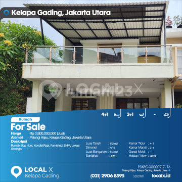 Rumah Siap Huni, Kondisi Rapi, Furnished, SHM, Lokasi Strategis For Sale - Jual Rumah Pelangi Hijau, Kelapa Gading, Jakarta Utara Harga. Rp 380000xxxxJual) Deskripsi Properti. Rumah Siap Huni, Kondisi Rapi, Furnished, SHM, Lokasi Strategis Luas Tanah. 112 m2 Dimensi. 7x16 Luas Bangunan. 134 m2 Sertipikat. SHM Kamar Tidur. 4+1 Kamar Mandi. 3+1 Garasi Mobil. - Hadap / View. Barat LOCAL X Kelapa Gading ******** ⓪②① ②⑨⓪⑥ ⑧⑤⑨⑤ P3KPG-0000xxxx-TA-J