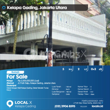 Dekat Dengan Mall Kelapa Gading, Dekat Sekolah Tunas Karya For Sale - Jual Rumah Putih Salju, Kelapa Gading, Jakarta Utara Harga. Rp 250000xxxxJual) Deskripsi Properti. Dekat Dengan Mall Kelapa Gading, Dekat Sekolah Tunas Karya Luas Tanah. 120 m2 Dimensi. 8x15 Luas Bangunan. 160 m2 Sertipikat. SHM Kamar Tidur. 5 Kamar Mandi. 2 Garasi Mobil. 0+2 Hadap / View. Utara LOCAL X Kelapa Gading ******** ⓪②① ②⑨⓪⑥ ⑧⑤⑨⑤ P3KPG-0000xxxx-WN-J
