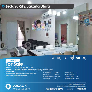 Semi Furnished, Bebas Banjir, Fasilitas Sport Club, Kolam Renang, Dekat Pusat Kuliner For Sale - Jual Rumah Sedayu City Blok ABR Kelapa Gading, Jakarta Utara Harga. Rp 355000xxxxJual) Deskripsi Properti. Semi Furnished, Bebas Banjir, Fasilitas Sport Club, Kolam Renang, Dekat Pusat Kuliner Luas Tanah. 75 m2 Dimensi. 6x12.5 Luas Bangunan. 107 m2 Sertipikat. SHM Kamar Tidur. 3 Kamar Mandi. 3 Garasi Mobil. 0+1 Hadap / View. Utara LOCAL X Kelapa Gading ******** ⓪②① ②⑨⓪⑥ ⑧⑤⑨⑤ Whatsapp/Call. Mariana - ⓪⑧①⑥④⑧③⓪⑤⑤⓪ P3KPG-0000xxxx-MT-J
